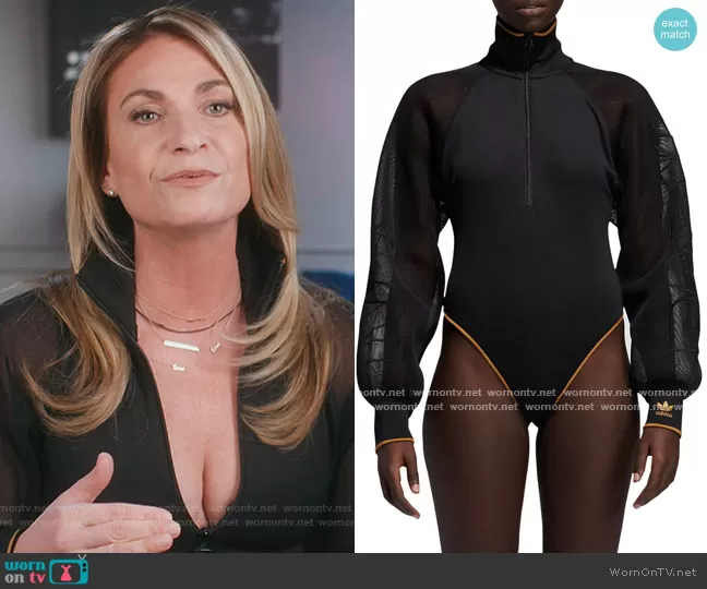 on The Real Housewives of New York City on Bravo was spotted wearing this black mesh top on The Real Housewives of New York City on episode 'Putting the Tiff in Tiffany's' (13x04) in May 2021. 's Bodysuit is the Mesh Sleeve Bodysuit by Adidas X Ivy Park.