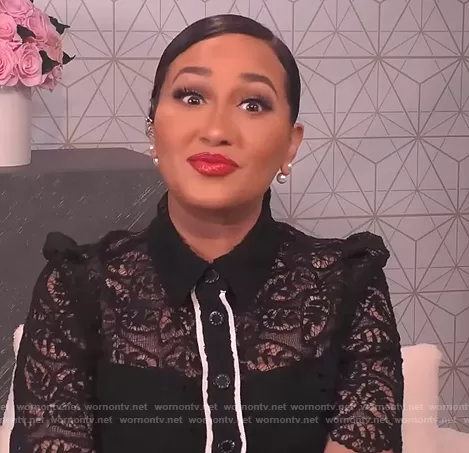Adrienne Houghton on The Real on BETher was spotted wearing this black lace contrast trim dress on The Real on May 28 2021's episode. Adrienne's Dress is the Lace Dress by Sandro.