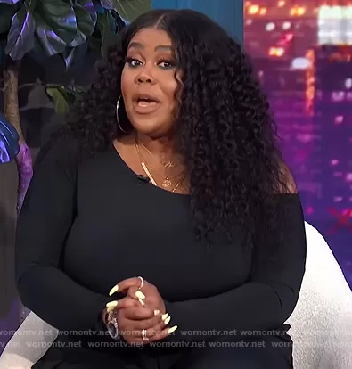Nina Parker on E! News on E! was spotted wearing this black off shoulder jumpsuit on E! News Nightly Pop on May 28 2021's episode. Nina's Jumpsuit is the Trendy Plus Size Off-the-Shoulder Jumpsuit by Nina Parker.