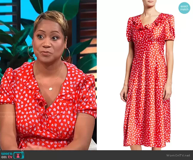 Monique Kelley on E! News on E! was spotted wearing this red heart print dress on E! News Daily Pop on Jun 01 2021's episode. Monique's Dress is the The Love Dress by Marc Jacobs.