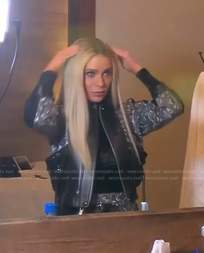 Dorit Kemsley on The Real Housewives of Beverly Hills on Bravo was spotted wearing this black monogram leather jacket and skirt on The Real Housewives of Beverly Hills on episode 'Sutton's Gotta Give' (11x03) in Jun 2021. Dorit's Jacket is the Monogram Shadow Leather Jacket by Louis Vuitton . Dorit's Skirt is the Monogram Shadow Leather Skirt by Louis Vuitton.