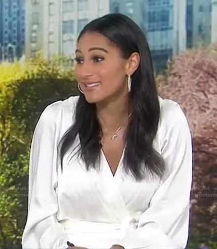 on Today on NBC was spotted wearing this white wrap jumpsuit on Today on Jun 07 2021's episode. 's Jumpsuit is the Piper Combo Wrap Jumpsuit by Jonathan Simkhai.
