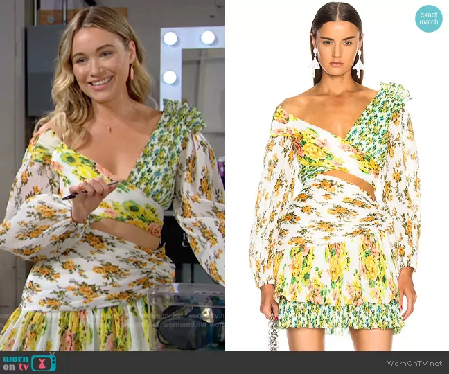Flo Fulton (played by Katrina Bowden) on The Bold and the Beautiful on CBS was spotted wearing this mixed floral mini dress with cutout on The Bold and the Beautiful on Jun 08 2021's episode. Flo's Dress is the Golden Surfer Dress by Zimmermann .