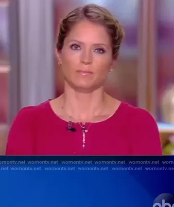 Sara Haines on The View on ABC was spotted wearing this pink zip front romper on The View on Jun 09 2021's episode. Sara's Top is the Rossano Belted Romper by Vanessa Bruno.