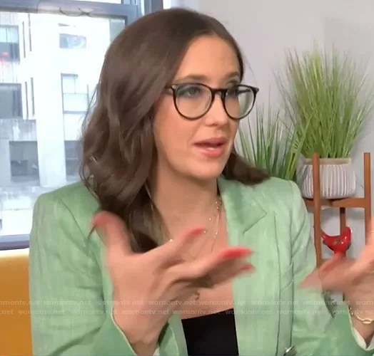 Savannah Sellers on Today on NBC was spotted wearing this Savannah’s green double breasted blazer on Today on Jun 10 2021's episode. Savannah S's Jacket is the Diego Linen Blend Dickey Jacket by Veronica Beard.