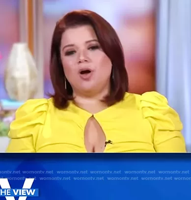 Ana Navarro on The View on ABC was spotted wearing this yellow keyhole blouse on The View on Jun 14 2021's episode. Ana's Top is the Ruched Keyhole Blouse by INC International Concepts.