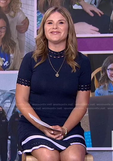 Jenna Bush Hager on Today on NBC was spotted wearing this navy asymmetric knit dress on Today on Jun 07 2021's episode. Jenna's Dress is the Costa Dress by Shoshanna.