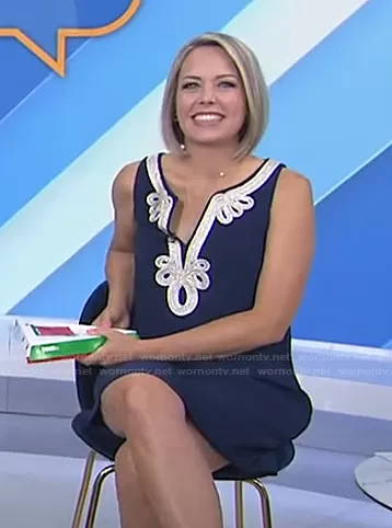 Dylan Dreyer on Today on NBC was spotted wearing this navy embroidered sleeveless dress on Today on Jun 16 2021's episode. Dylan's Dress is the Cherlyn Dress by Lilly Pulitzer.