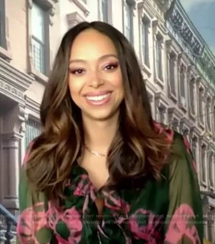 on Good Morning America on ABC was spotted wearing this green and pink tie dye ruffle dress on Good Morning America on Jun 16 2021's episode. 's Dress is the Poppy Tiered Tie-Dye Dress by Zimmermann.