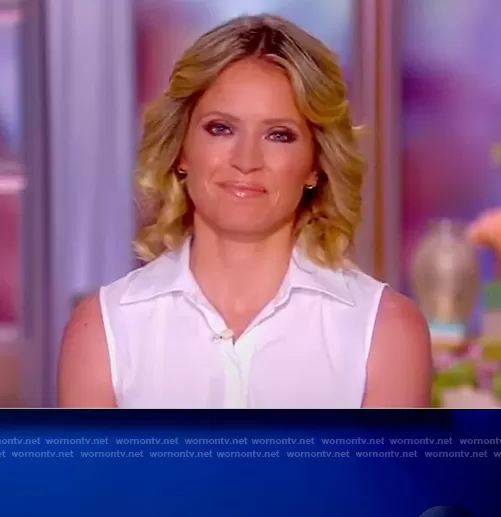 Sara Haines on The View on ABC was spotted wearing this white sleeveless shirtdress on The View on Jun 17 2021's episode. Sara's Dress is the Camila Sleeveless Shirt Dress by Ramy Brook.