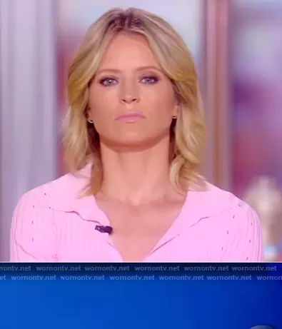 Sara Haines on The View on ABC was spotted wearing this pink polo dress on The View on Jun 21 2021's episode. Sara's Dress is the Pink Slash Dress by Helmut Lang.