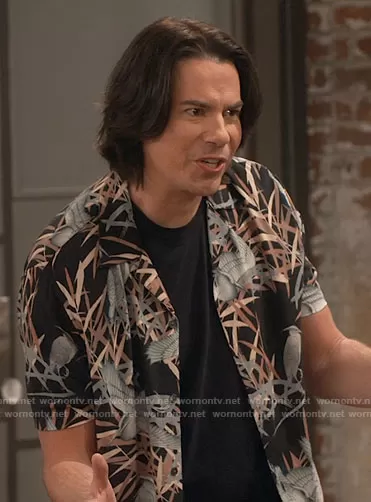 Spencer Shay (played by Jerry Trainor) on iCarly on Paramount+ was spotted wearing this bird print shirt on iCarly on episode 'iStart Over' (1x01) in Jun 2021. Spencer's Shirt is the Siber Shirt by All Saints.