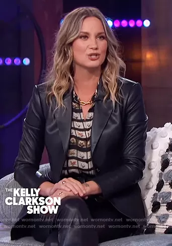 on The Kelly Clarkson Show on NBC was spotted wearing this Marilyn Monroe photo print shirt on The Kelly Clarkson Show on Jun 23 2021's episode. 's Top is the Nina Film Roll Washed Silk Blouse by L'Agence.