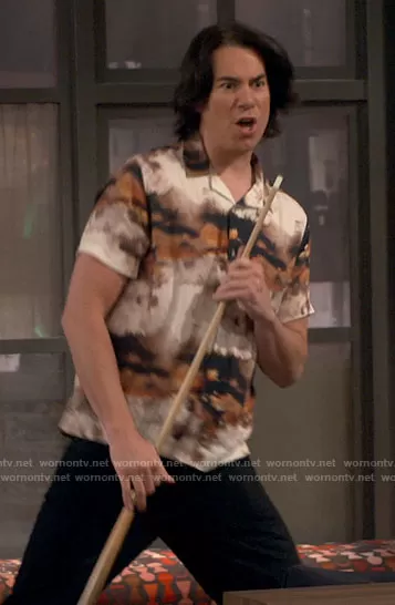 Spencer Shay (played by Jerry Trainor) on iCarly on Paramount+ was spotted wearing this printed short sleeve shirt on iCarly on episode 'iFauxpologize' (1x03) in Jun 2021. Spencer's Shirt is the Abstract Print Short Sleeve Button-Up Shirt by Topman.