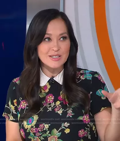 Eva Pilgrim on Good Morning America on ABC was spotted wearing this black floral collared dress on Good Morning America on Jun 28 2021's episode. Eva's Dress is the Abito St Flower Butterfly Dress by RED Valentino.
