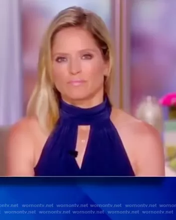 Sara Haines on The View on ABC was spotted wearing this blue keyhole halterneck dress on The View on Jun 28 2021's episode. Sara's Dress is the Annette Tiered Midi Dress by Ramy Brook .