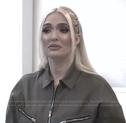 on The Real Housewives of Beverly Hills on Bravo was spotted wearing this khaki green zip front jumpsuit on The Real Housewives of Beverly Hills on episode 'Defining Women' (11x07) in Jul 2021. 's Jumpsuit is the Polly Jumpsuit by IRO.