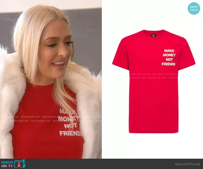 Erika Jayne on The Real Housewives of Beverly Hills on Bravo was spotted wearing this Make Money Not Friends print tee on The Real Housewives of Beverly Hills on episode 'Defining Women' (11x07) in Jul 2021. Erika's Top is the Logo Print Cotton Jersey T-shirt by Make Money Not Friends.
