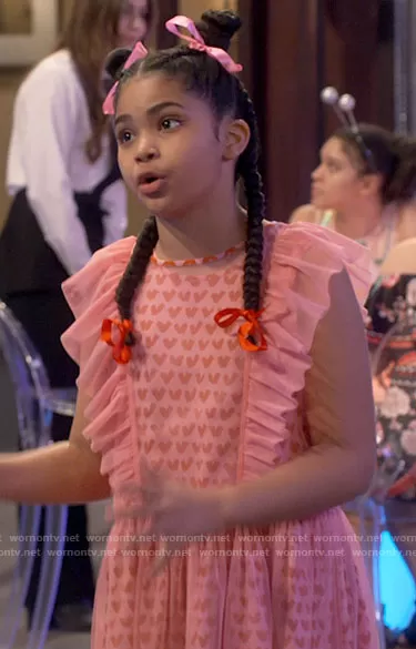 Millicent (played by Jaidyn Triplett) on iCarly on Paramount+ was spotted wearing this pink heart dress with ruffles on iCarly on episode 'iRobot Wedding' (1x05) in Jul 2021. Millicent's Dress is the Hearts Dress with Removable Tulle Overlay by Stella McCartney.
