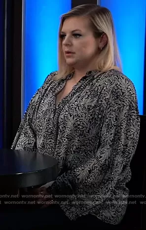 Maxie Jones (played by Kirsten Storms) on General Hospital on ABC was spotted wearing this black floral print blouse on General Hospital on Jun 28 2021's episode. Maxie's Top is the Floral Print Blouse by H&M.