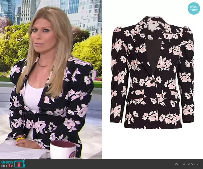 Jill Martin on Today on NBC was spotted wearing this black floral blazer and white pants on Today on Jul 07 2021's episode. Jill's Jacket is the Suki Ikat Floral Blazer by Cinq a Sept . Jill's Pants is the Satin-Combo Front-Slit Pants by Jonathan Simkhai.