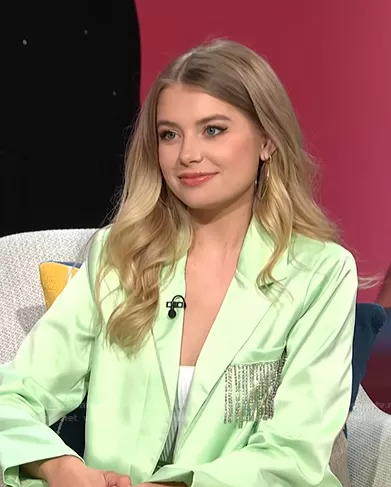 on E! News on E! was spotted wearing this lime green satin blazer on E! News Daily Pop on Jul 07 2021's episode. 's Jacket is the Co Ord Satin Diamante Pocket Blazer by Missguided . 's Shorts is the Co Ord Satin Shorts by Missguided.