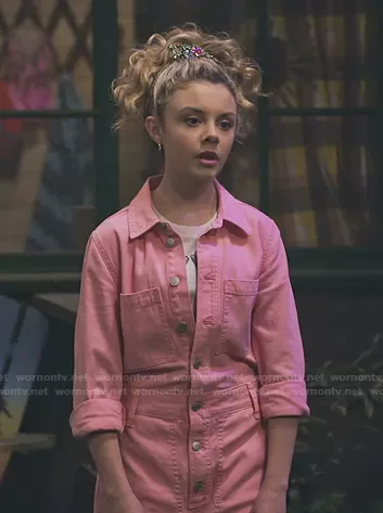 Destiny Baker (played by Mallory James Mahoney) on Bunkd on Disney was spotted wearing this pink boilersuit on Bunkd on episode 'Camp Creepy-Waka' (5x18) in Jul 2021. Destiny's Jumpsuit is the Garment Dyed Relaxed Coverall Jumpsuit by Madewell.