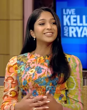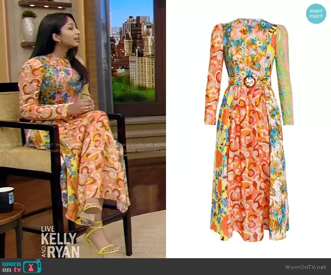 on Live with Kelly and Mark on Disney ABC Home Entertainment was spotted wearing this mixed floral print dress on Live with Kelly and Ryan on Jul 14 2021's episode. 's Dress is the Estelle Dress by Zimmermann . 's Shoes is the Merinda Sandals by Stuart Weitzman.