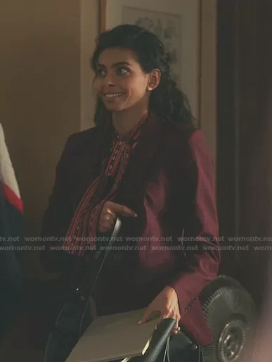 (played by ) on Gossip Girl on HBO Max was spotted wearing this pink printed tie neck blouse on Gossip Girl on episode 'She's Having a Maybe' (1x02) in Jul 2021. 's Top is the Leslie Blouse by A.L.C..
