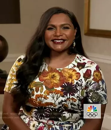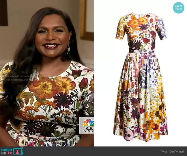 on Today on NBC was spotted wearing this white floral short sleeve dress on Today on Jul 15 2021's episode. 's Dress is the Ombre Pressed Flower-Print Fit-&-Flare Dress by Oscar de la Renta.