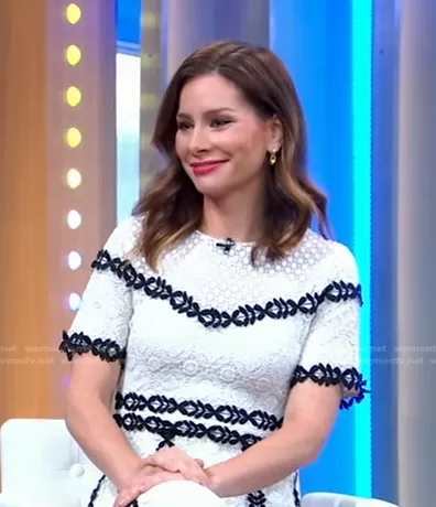 Rowan Bicolore Lace Dress by Maje worn by Rebecca Jarvis on Good Morning America