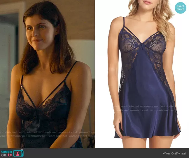 Rachel Patton (played by Alexandra Daddario) on The White Lotus on HBO was spotted wearing this navy lace chemise on The White Lotus on episode 'Arrivals' (1x01) in Jul 2021. Rachel's Chemise is the Navy Chemise by In Bloom by Jonquil.