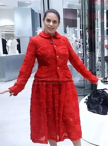 Donna Farizan on Today on NBC was spotted wearing this red tulle jacket and skirt on Today on Jul 27 2021's episode. Donna's Jacket is the Floral Tulle Single-Breasted Jacket by Comme Des Garçons Girl . Donna's Skirt is the Tulle-Appliqué Pleated Skirt by Comme Des Garçons Girl.