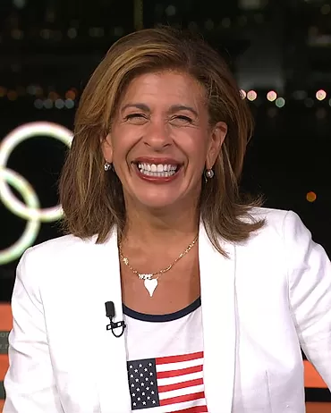 Hoda Kotb on Today on NBC was spotted wearing this USA flag print top and white blazer on Today on Aug 02 2021's episode. Hoda's Top is the Team USA Flag Jersey Tank Top by Ralph Lauren . Hoda's Jacket is the Parke blazer in Stretch Linen by J. Crew.