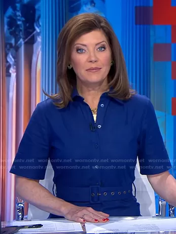 Norah O'Donnell on CBS Evening News on CBS was spotted wearing this blue belted jumpsuit on CBS Evening News on Aug 02 2021's episode. Norah's Jumpsuit is the Zavey Belted Linen-Blend Jumpsuit by Staud.