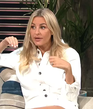 Morgan Stewart on E! News on E! was spotted wearing this white denim romper on E! News Daily Pop on Aug 03 2021's episode. Morgan's Romper is the Easy Cutoff Long Sleeve Denim Romper by Frame.