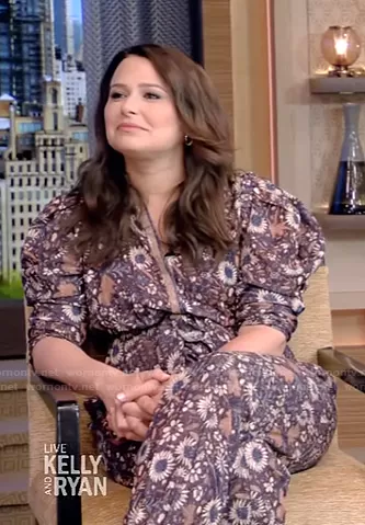 on Live with Kelly and Mark on Disney ABC Home Entertainment was spotted wearing this floral puff sleeve jumpsuit on Live with Kelly and Ryan on Aug 04 2021's episode. 's Jumpsuit is the Meadow Jumpsuit by Ulla Johnson.