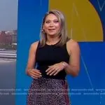 Ginger Zee on Good Morning America on ABC was spotted wearing this black cutout top and leopard print skirt on Good Morning America on Jul 13 2022's episode. Ginger's Top is the Sleeveless Compact Knit Top by Ramy Brook . Ginger's Skirt is the Elsie Skirt by Hale Bob . Ginger's Shoes is the Lang Patent Leather Sandals by Jimmy Choo.