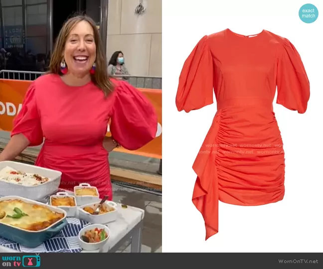 on Today on NBC was spotted wearing this red puff sleeve mini dress on Today on Aug 09 2021's episode. 's Dress is the Pia Side Ruched Dress by Rhode.