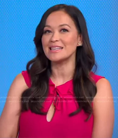 Eva Pilgrim on Good Morning America on ABC was spotted wearing this pink maternity dress on Good Morning America on Aug 12 2021's episode. Eva's Dress is the Flutter Maternity Dress by Amanda Uprichard.