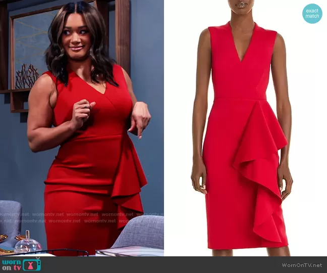 Fatima (played by Crystal Hayslett) on Tyler Perrys Sistas on BET was spotted wearing this red ruffled dress on Tyler Perrys Sistas on episode 'Run Tell That' (3x10) in Aug 2021. Fatima's Dress is the Ruffle Skirt Cocktail Dress by Eliza J.