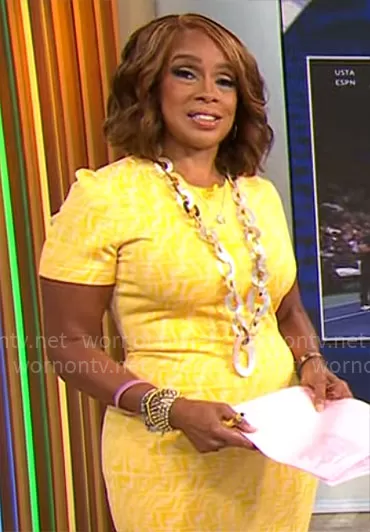 Gayle King’s yellow monogram print dress on CBS Mornings
