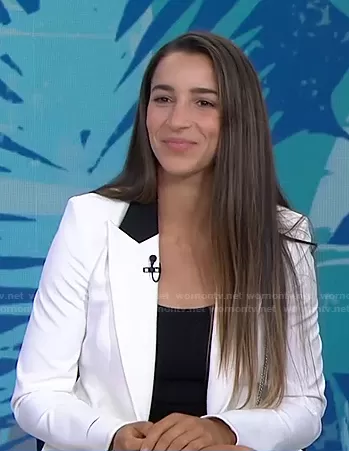 on Today on NBC was spotted wearing this white chain detail blazer on Today on Aug 17 2021's episode. 's Jacket is the Fergus Dickey Jacket by Veronica Beard.