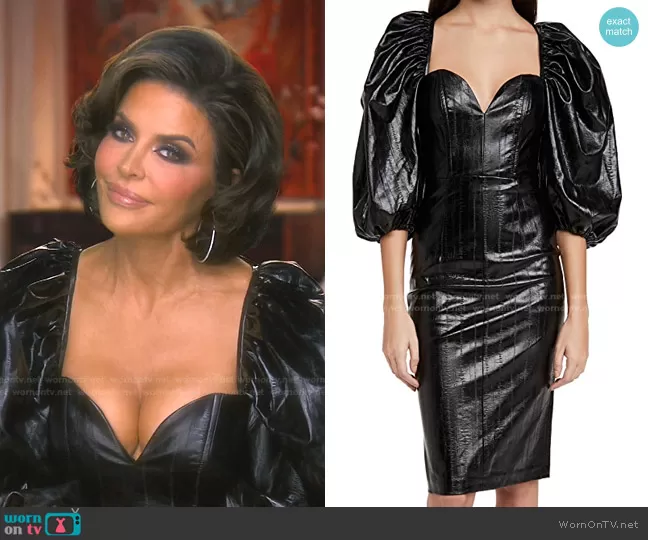 Lisa Rinna on The Real Housewives of Beverly Hills on Bravo was spotted wearing this black sweetheart leather dress on The Real Housewives of Beverly Hills on episode 'Dressed to the 90210s' (11x01) in May 2021. Lisa's Dress is the Irina Dress by Rotate.
