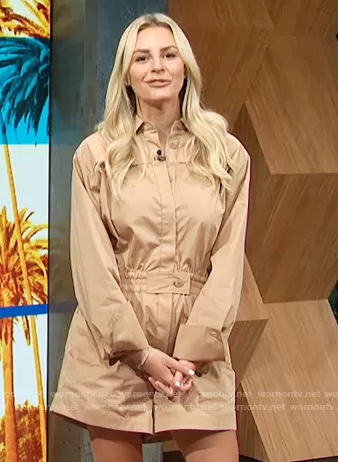Morgan Stewart on E! News on E! was spotted wearing this beige romper on E! News Daily Pop on Aug 20 2021's episode. Morgan's Romper is the Leigh Cotton Romper by Alexis.