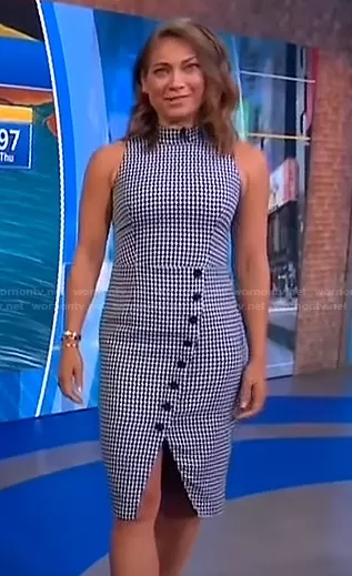 Ginger Zee on Good Morning America on ABC was spotted wearing this houndstooth sleeveless dress on Good Morning America on Aug 24 2021's episode. Ginger's Dress is the Sofie Dress in Classic Chic by Black Halo.