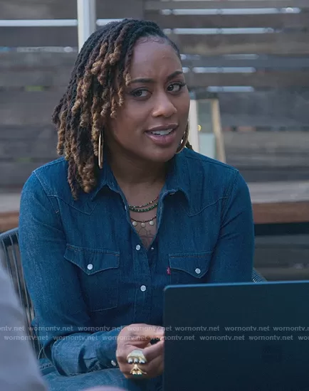 Malika Williams (played by Zuri Adele) on Good Trouble on Freeform was spotted wearing this denim western shirt on Good Trouble on episode 'Blindside' (3x18) in Sep 2021. Malika's Top is the Ultimate Western Denim Shirt by Levi's.