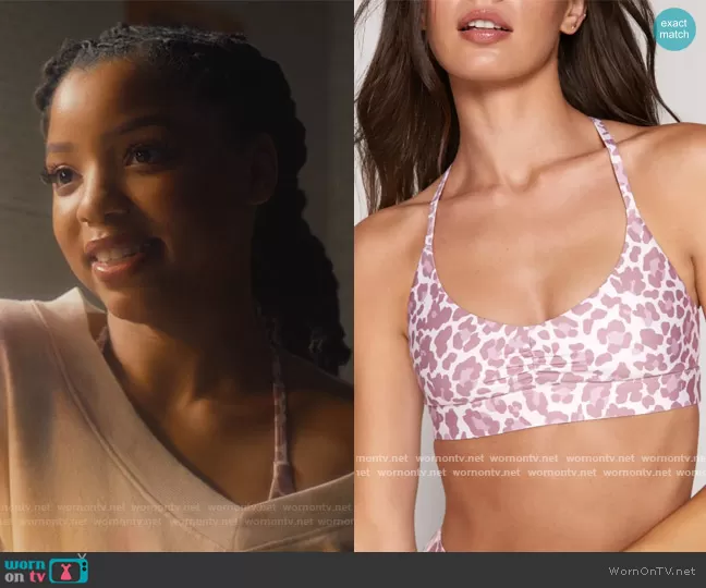 Jazlyn Forster (played by Chloe Bailey) on Grown-ish on Freeform was spotted wearing this pink leopard print leggings on Grown-ish on episode 'Cancelled' (4x08) in Aug 2021. Jazlyn's Bra is the Studio T-Back Bra by Spiritual Gangster . Jazlyn's Leggings is the Intent 7/8 High Waist Legging by Spiritual Gangster.