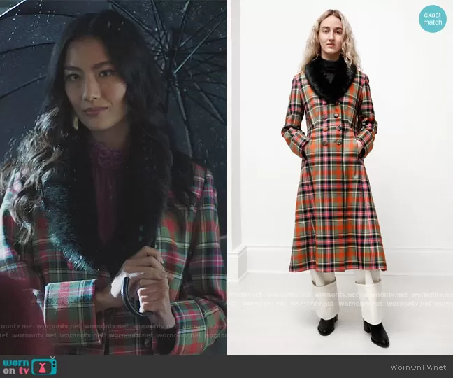 (played by ) on Riverdale on The CW was spotted wearing this plaid coat on Riverdale on episode 'The Night Gallery' (5x14) in Sep 2021. 's Coat is the Constantine A-Line Plaid Coat by Shrimps . 's Skirt is the Burn midi skirt by Staud.