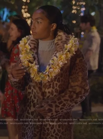 Zoey Johnson (played by Yara Shahidi) on Grown-ish on Freeform was spotted wearing this leopard fur coat on Grown-ish on episode 'It Was Good Until It Wasn't' (4x10) in Jan 2022. Zoey's Coat is the Stefani Coat by I.Am.Gia.